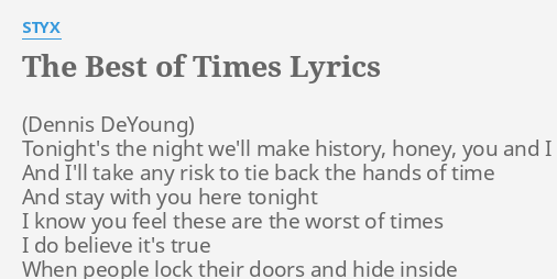 The Best of Times Lyrics. Fooling Yourself The Angry Young Man. Lyrics to The Best Of Times Styx Styx Best Of Times Tonights the night well make history.